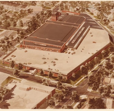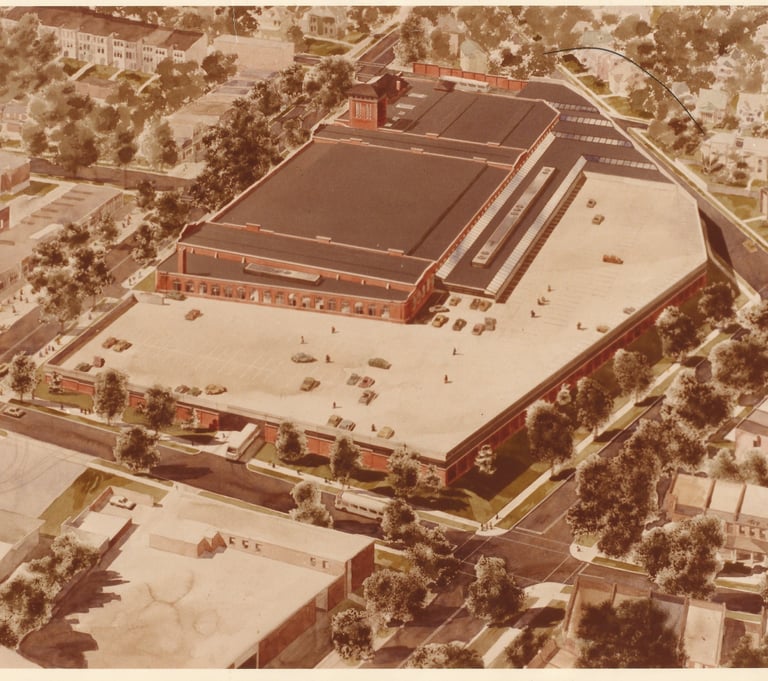 RENDERING OF THE COMPLETELY RENOVATED AND EXPANDED NORTHERN BUS GARAGE WHICH INCLUDED THE CONSTRUCTION OF AN EMPLOYEE PARKING DECK OVER THE ON GRADE BUS PARKING AREA. THE RALPH M. PARSONS COMPANY PROVIDED ENGINEERING DESIGN AS OUR SUBCONSULTANT FOR THIS PROJECT