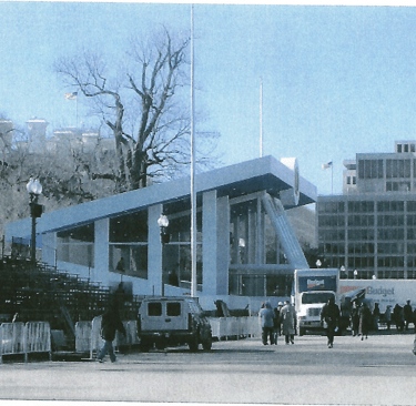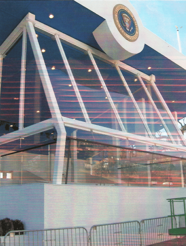 YEAR 2000, PRESIDENTAL INAUGURAL REVIEWING STAND FOR THE INAUGURATION OF PESIDENT GEORGE BUSH. AFTER THE 9/11 TERROR ATTACKS, THE REVIEWING STAND WAS REDESIGNED BY ALSA. THE REDESIGN INCLUDED THE COMPLETE ENCLOSURE OF THE INAUGURAL STAND WITH PROTECTIVE GLAZING AND A HEATING SYSTEM.