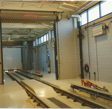 RUMMEL, KLEPPER & KAHL (RKK) WAS SELECTED BY THE WASHINGTON METROPOLITAN AREA TRANSIT AUTHORITY, (WMATA) TO DESIGN THE BRANCH ROUTE, BRANCH AVENUE STORAGE YARD WHICH IS LOCATED AT THE SOUTHERN END OF THE GREEN LINE. THE REPAIR YARD CONTAINS SEVEN BUILDINGS. THE LARGEST BUILDING IS THE 64,000 S.F. TWO STORY CAR MAINTENANCE SHOP (CMNT SHOP). THE SECOND FLOOR OF THE CMNT SHOP CONTAINS THE YARD CONTROL TOWER WHICH IS CANTILEVERED FIVE FEET BEYOND THE FIRST FLOOR ON THREE SIDES IN ORDER TO PROVIDE CLEAR SIGHT LINES OF THE ENTIRE YARD. THE OTHER BUILDINGS IN THE YARD ARE THE TWO STORY 20,000 SF SYSTEMS MAINTENANCE BUILDING, THE CAR WASH BUILDING, THE TRACTION POWER SUB STATION BUILDING, THE WATER METER BUILDING, THE GATE HOUSE BUILDING AND THE CHEMICAL STORAGE BUILDING. AUSTIN L. SPRIGGS ASSOCIATES (ALSA) PROVIDED ALL OF THE ARCHITECTURAL DESIGN FOR ALL OF THE BUILDINGS FROM SCHEMATICS DESIGN THROUGH FINAL CONTRACT (BID) DOCUMENTS.